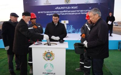 ТҮРКІСТАН: «TURAN» АРНАЙЫ ЭКОНОМИКАЛЫҚ АЙМАҒЫНДА БИОЫДЫРАЙТЫН ӨНІМДЕР ЗАУЫТЫНЫҢ ІРГЕТАСЫ ҚАЛАНДЫ