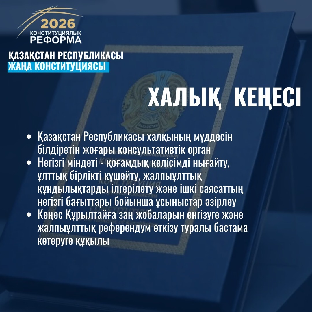 Жаңа Конституция жобасында Қазақстан халқының мүддесін білдіретін жоғары консультативтік орган – Халық Кеңесін құру қарастырылған.