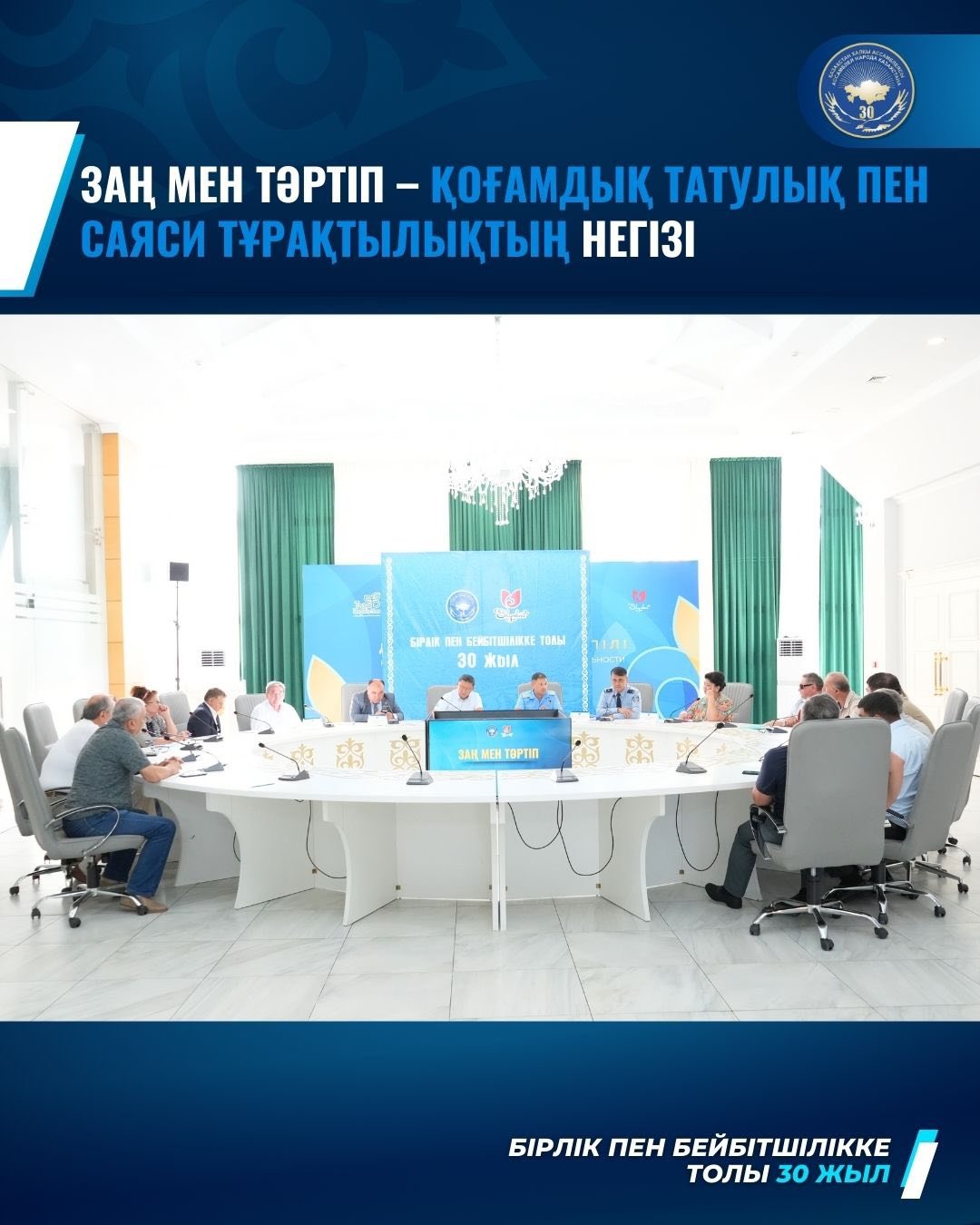 🔹Басқосуда қоғамда заң үстемдігі мен қоғамдық тәртіптің сақталуы елдің тұрақты дамуы мен халықтың бейбіт өмір сүруінің кепілі екені айрықша айтылды. Құқықтық мәдениетті дәріптеу, этносаралық келісімді нығайту арқылы қоғамдағы тыныштықты сақтау – Қазақстан халқы Ассамблеясы ұстанған басты бағыттардың бірі екені тиянақты түсiндiрiлдi.