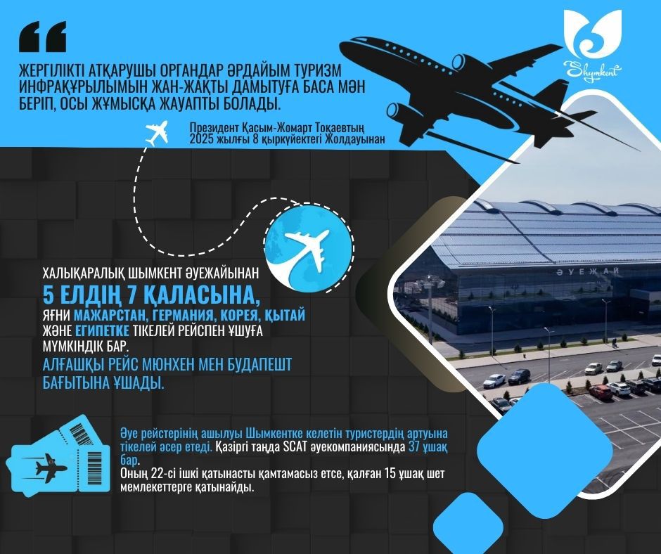 Енді шымкенттіктер мен қала қонақтары алыс және жақын шетелдерге тікелей Шымкент әуежайынан ұшуға мүмкіндік алады. Бұл жоба өңірдің көлік және туризм саласын дамытуға зор ықпал етеді.