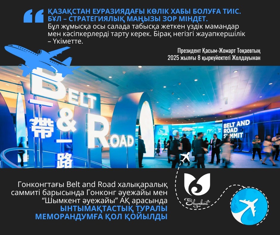 Сонымен қатар, Гонконгтағы Belt and Road халықаралық саммиті аясында Гонконг әуежайы мен «Шымкент әуежайы» АҚ арасында ынтымақтастық туралы меморандумға қол қойылды.